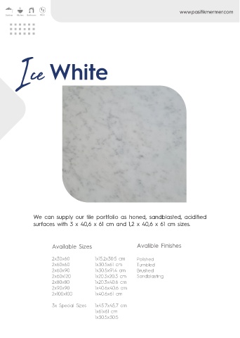 We can supply our tile portfolio as honed, sandblasted, acidified